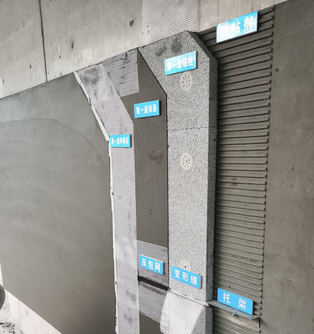 4、應設置標示牌以圖文形式展示保溫板粘貼方法及粘結面積要求、錨栓固定方法及錨固深度要求等。
