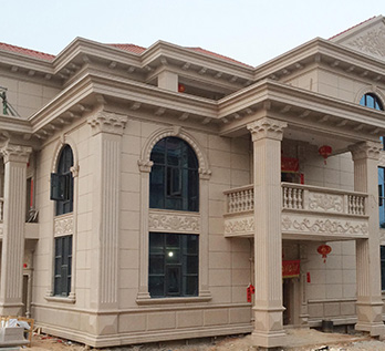 使用輕瓷保溫裝飾一體板為主要材料,建議搭配花崗巖石材的窗邊,兩者搭配一點不遜色真石材干掛效果,就是石材商家來了不了解的也看不出個所以然來!讓你省錢的同時又擁有好看、氣派的別墅。