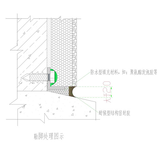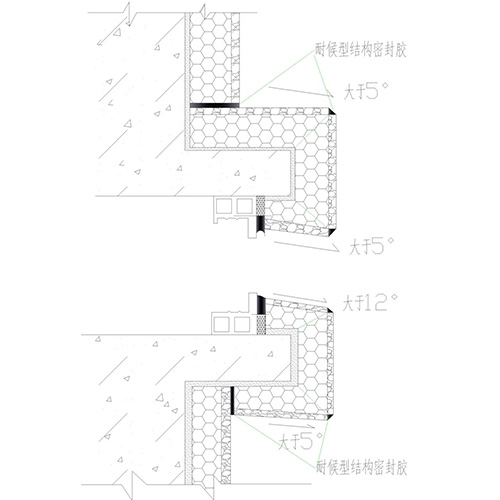 2.4.填縫材料可選用保溫砂漿、聚乙烯泡沫條、聚苯乙烯泡沫條、聚氨酯發泡填縫膠等;密貼選用硅酮類中性結構膠。