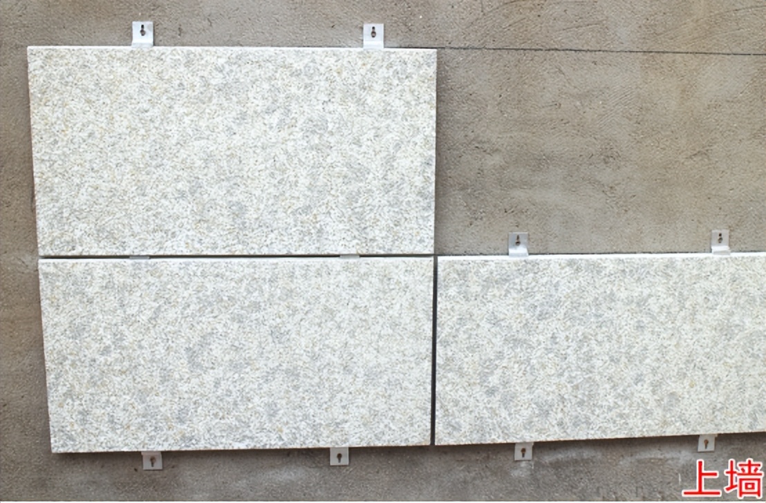 打孔埋置錨栓,固定錨固件。L型錨固件與H型掛件的連接件通過膨脹螺栓固定。