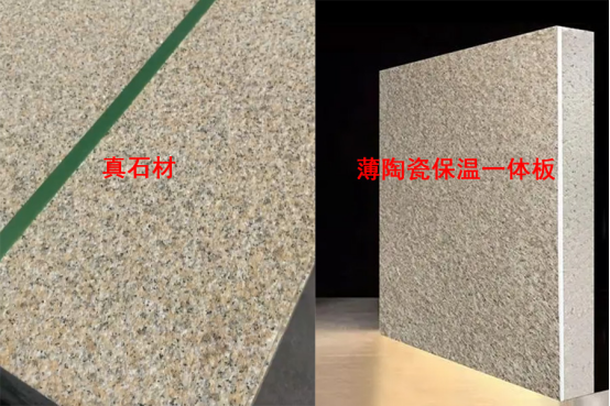 薄陶瓷保溫一體板:薄陶瓷保溫一體板裝飾效果也十分的好看,能達到99%石材效果并且能做到石材無法擁有的光澤度,由工廠全自動機械化生產(chǎn)而來,色彩穩(wěn)定無色差。