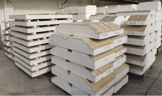 公司產品以熱壓為主,有專門熱壓生產線,達到6分鐘成品,解決了冷壓復合粘接不牢固、長時間壓制變形等問題。并首創了熱壓復合薄陶瓷線條造型,解決了傳統只能用干掛石材作為線條造型的難題,填補了高端線條市場的空白,為企業建造大幅度降低成本。