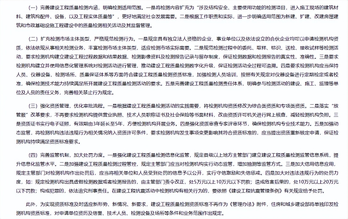 《建設工程質量檢測管理辦法》加大處罰力度。對一些質量不合格、產品不合規的企業處罰力度加大,產品檢測報告必須真實、有效、合規。