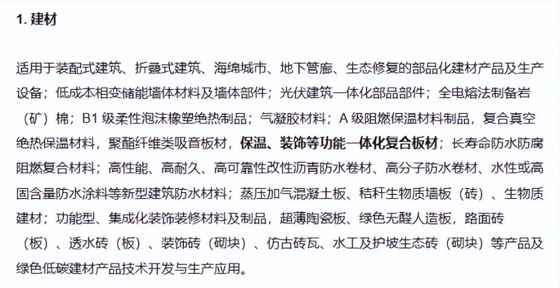 《產(chǎn)業(yè)結(jié)構(gòu)調(diào)整指導(dǎo)目錄(2023年本,征求意見(jiàn)稿)》中,保溫裝飾一體板被列入鼓勵(lì)類(lèi)建材。