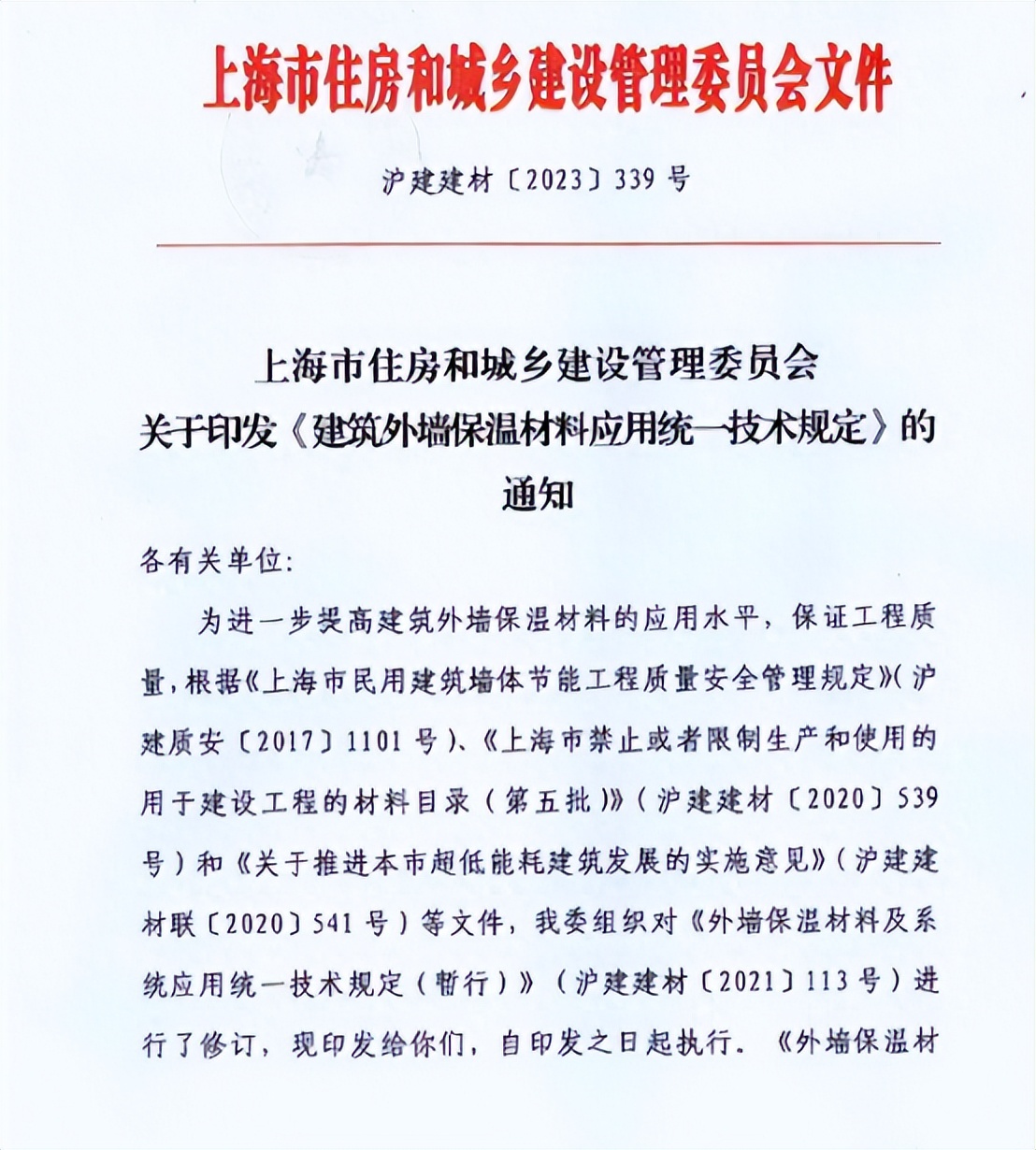 上海市發(fā)布《建筑外墻保溫材料應(yīng)用統(tǒng)一技術(shù)規(guī)定》,對(duì)保溫裝飾板外保溫系統(tǒng)用保溫材料的性能要求具體規(guī)范。