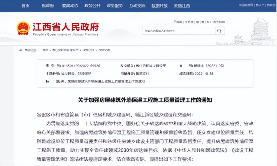 江西省關于加強房屋建筑外墻保溫工程施工質量管理工作的通知