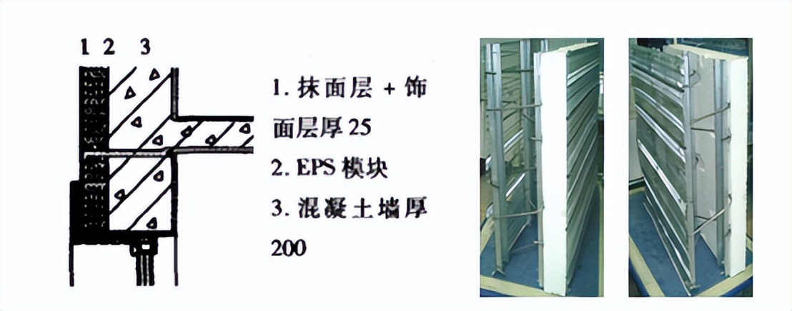 (4)免拆模板外保溫系統(tǒng):適用于剪力墻結(jié)構(gòu)外保溫,利用保溫板代替外部模板,實現(xiàn)墻體保溫、混凝土澆筑一次成型,將工廠標準化生產(chǎn)的EPS等保溫模塊經(jīng)積木式相互錯縫插接拼裝成現(xiàn)澆混凝土墻體的外側(cè)免拆模板,實現(xiàn)保溫承重一體化的外墻建筑結(jié)構(gòu)。該系統(tǒng)具有節(jié)省模板、保溫效果好、保溫層粘接牢固等優(yōu)點,具有較好的應用前景。常用地區(qū):上海、江蘇、南京等地。