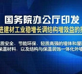 國務(wù)院辦公廳印發(fā)《關(guān)于促進建材工業(yè)穩(wěn)增長調(diào)結(jié)構(gòu)增效益的指導(dǎo)意見》中,明確指出“發(fā)展本質(zhì)安全、節(jié)能環(huán)保、輕質(zhì)高強的墻體和屋面材料、 外墻保溫材料,以及結(jié)構(gòu)與保溫裝飾一體化外墻板”。